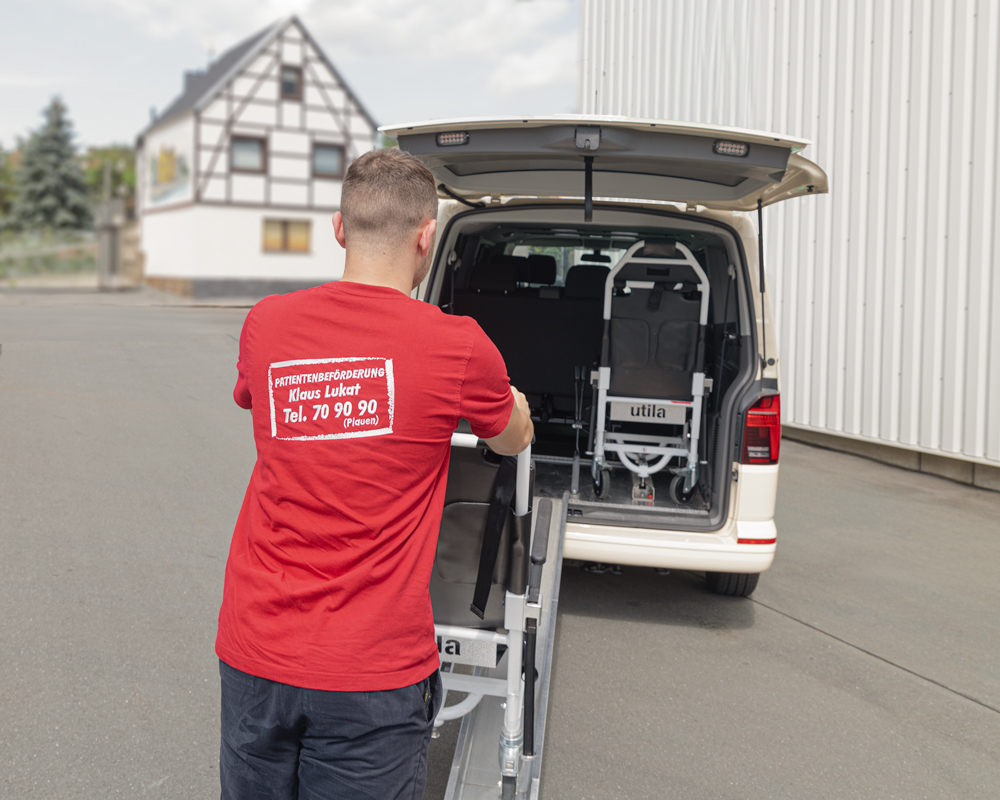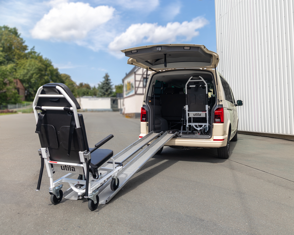 mit Auffahrrampe für Krankentragestuhl